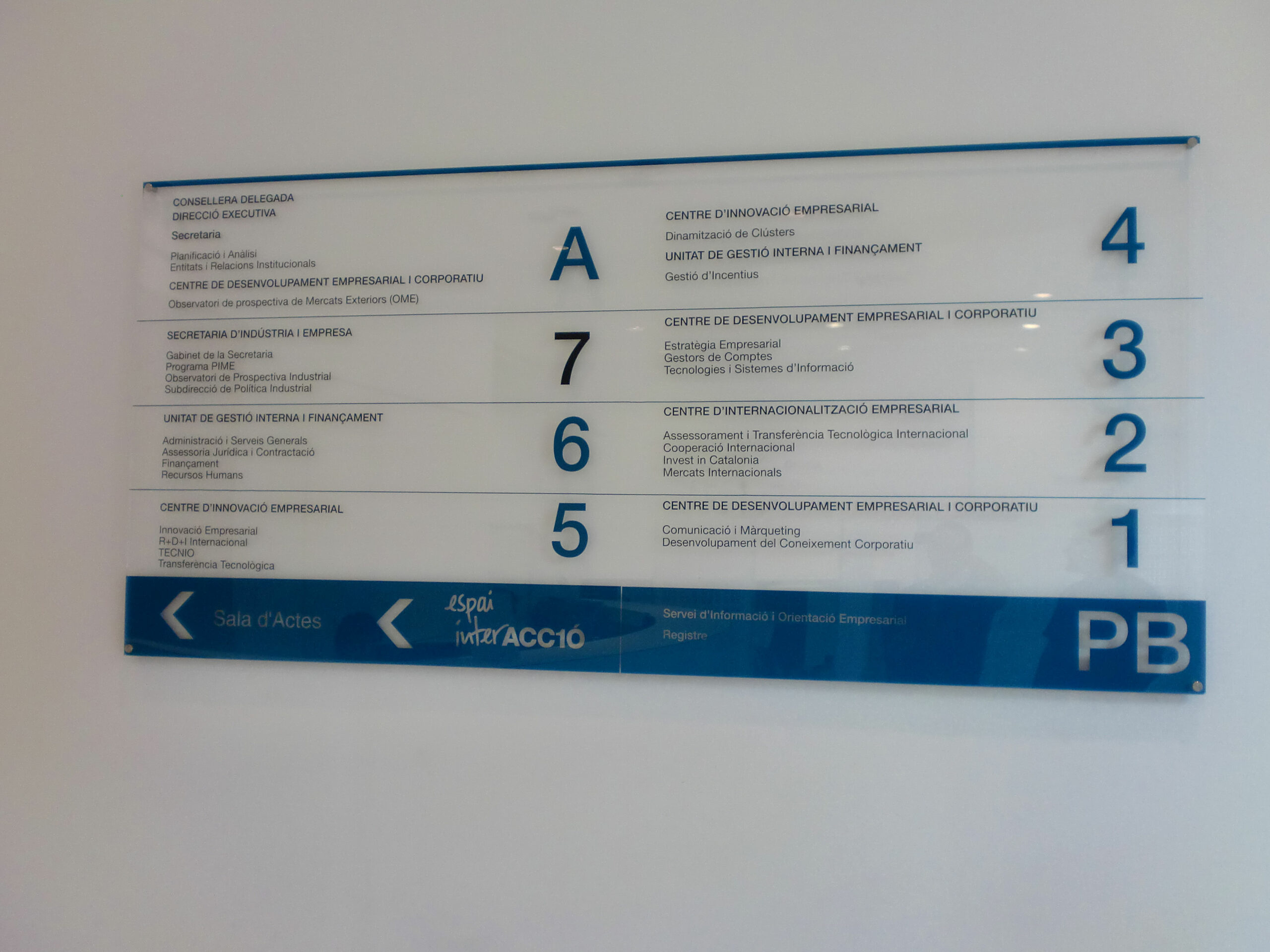 El encargo que nos hicieron fue una rotulación y señalización global de sus instalaciones. En cooperación con su departamento de diseño gráfico realizamos una señalización integral de las oficinas.